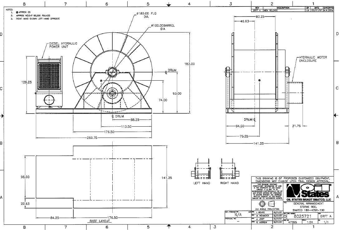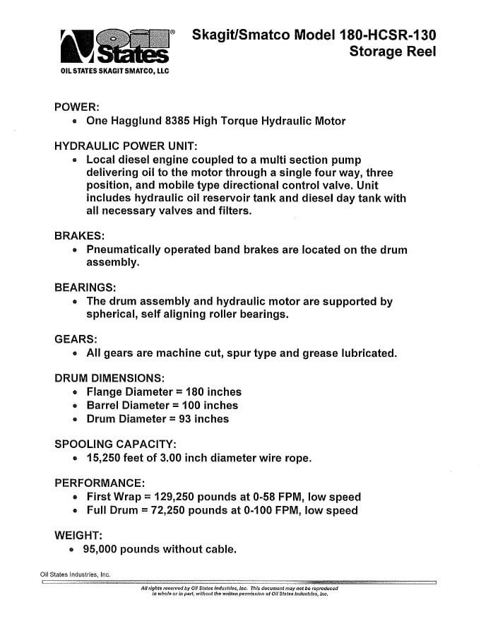 - Flange Diameter – 180” – 15,250 Feet of 3”